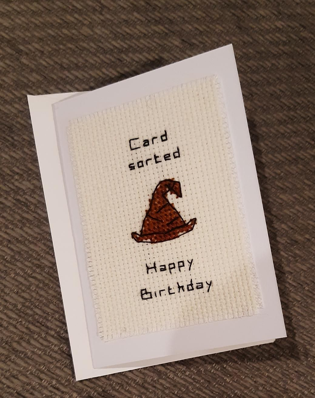 Completed cross stitched card. Size A6